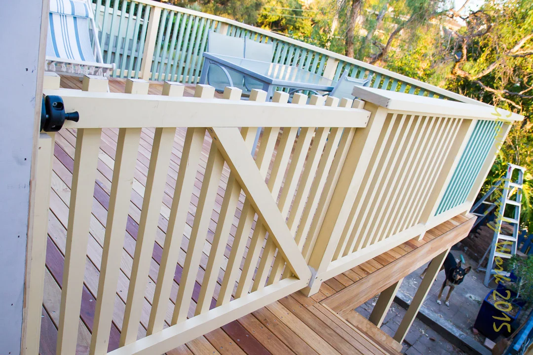 Barking dogs in the area drove the owner’s own crazy to in an effort to keep him further from the troublesome dogs, they needed gates in several places. Because the nearby fences and balustrades were oiled hardwood, I was comissioned to make hardwood gates from Merbau, an Indonesian timber which was a similar colour to the existing balustrading.