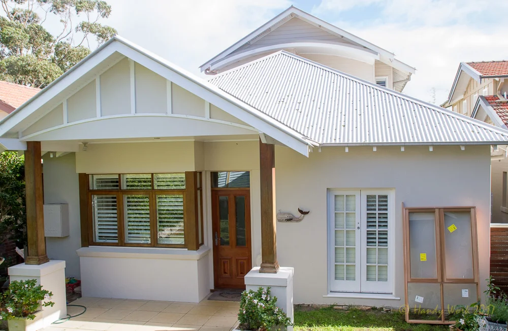 This renovated home on the Northern Beaches had a set of French Doors in the front wall which did not match at all with the style of home. Handy Work removed the old French Doors and installed a new window custom made to the opening size in one day. Then coated it with Sikens to give it the same look as the rest of the house.